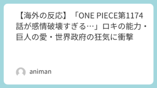 ワンピース第1175話の海外の反応まとめ。圧倒的スケールの新展開や衝撃シーンにファン騒然。バトルの迫力と今後の伏線についての考察も紹介します。