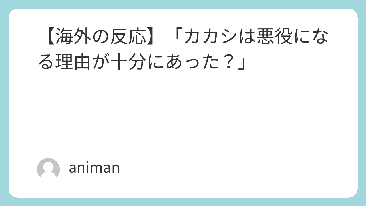 【海外の反応】「カカシは悪役になる理由が十分にあった?」