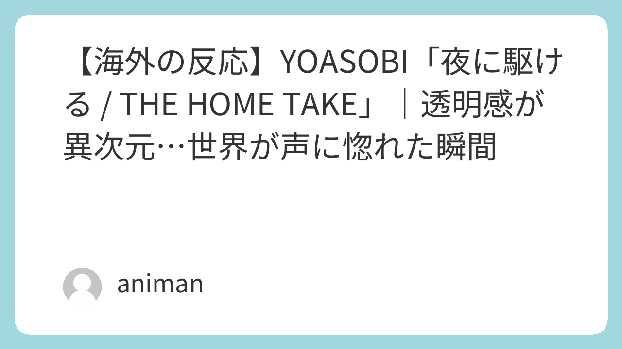 【海外の反応】YOASOBI「夜に駆ける / THE HOME TAKE」|透明感が異次元…世界が声に惚れた瞬間