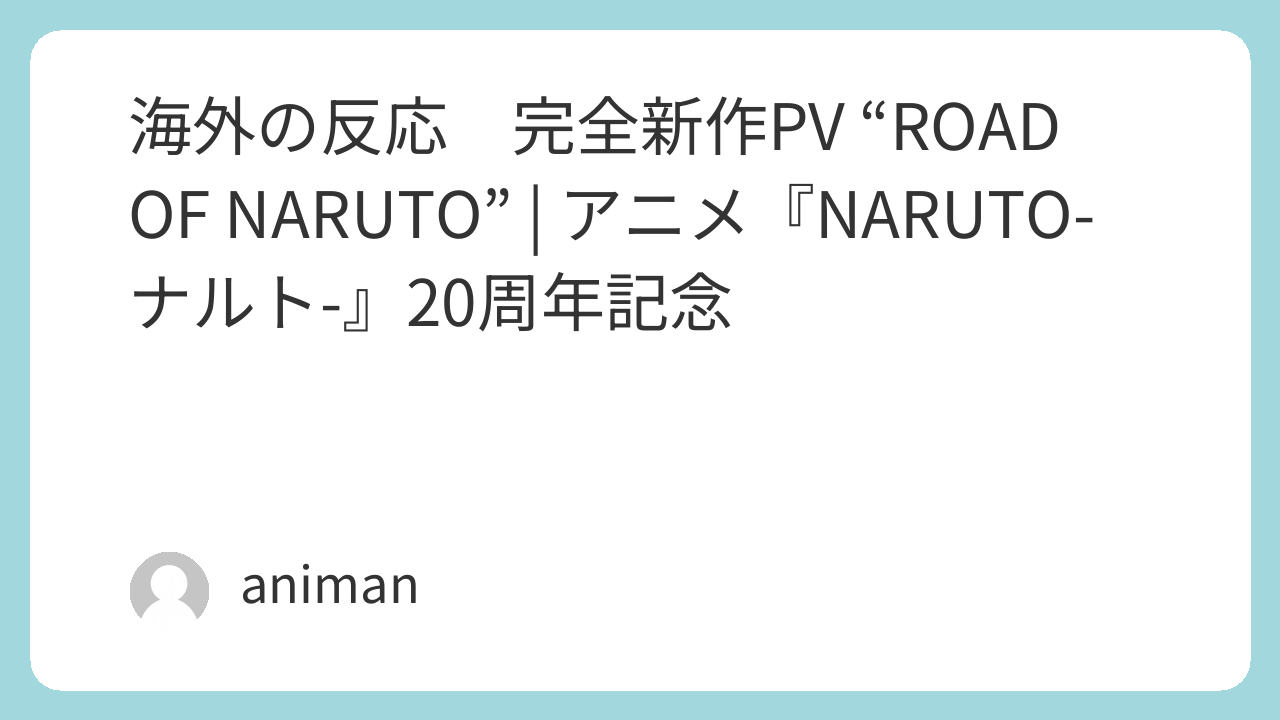 20周年記念NARUTO 完全新作PVの海外の反応をまとめました