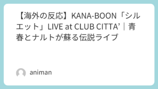 【海外の反応】KANA-BOON「シルエット」LIVE at CLUB CITTA’|青春とナルトが蘇る伝説ライブ