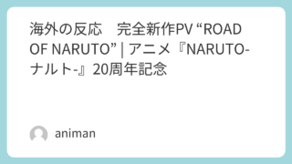 管理人20周年記念NARUTO 完全新作PVの海外の反応をまとめました海外の反応1:海外の反応本当に美しい。いつもありがとう、NARUTO❤ >>クソッ涙がこみ上げてくる2:海外の反応2ヶ月前からナルトを見た韓国人です。 本当に面白すぎて今...