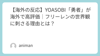 YOASOBI「勇者」に対する海外の反応をまとめました。Redditの実コメントと要約を交え、葬送のフリーレンOPが海外で高評価な理由を紹介します。
